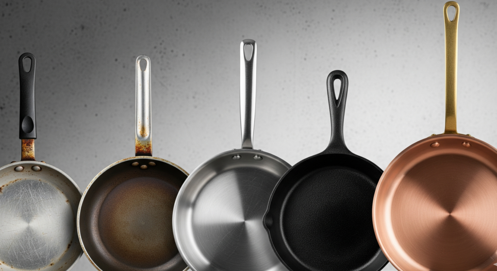 - ステンレス:耐久性が高く、酸や塩にも強いため長持ちします。しかし、焦げ付きやすい場合があります。