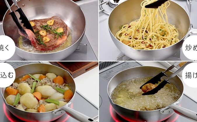 ステンレススチール製のフライパンは、高い耐久性と優れた熱伝導性を持ち合わせています。このため、均一な加熱が可能で、多種多様な料理に適しています。ただし、焦げ付きやすい場合もあるため、使用時には油をしっかり引くことが重要です。また、お手入れも比較的簡単で、食洗機で洗浄できるモデルも多数あります。